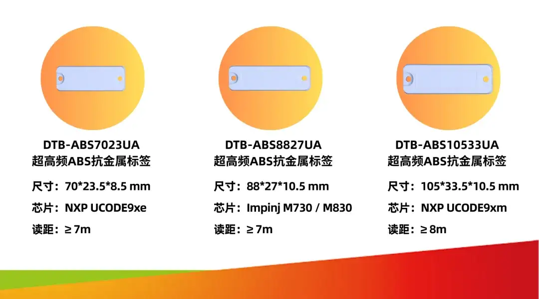 ABS 抗金属标签:具备工业级防护性能,可有效抵抗金属干扰,适用于金属类载具和货架,支持长期稳定使用。
