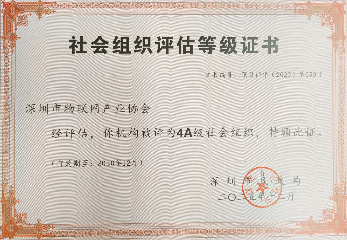 自成立以来,深圳市物联网产业协会始终秉持服务行业、赋能企业、推动产业发展的宗旨,在内部治理上精益求精,建立健全了完善的组织架构、规范的管理制度和高效的运行机制,确保各项工作有序推进;在行业服务中精准发力,积极搭建政企沟通桥梁、开展产业调研、组织行业交流活动、推动技术创新与成果转化,为深圳市物联网产业的集聚发展、提质增效提供了有力支撑。此次成功获评4A等级社会组织,既是政府主管部门对协会过往工作的高度认可,更是对协会未来发展的激励与鞭策。