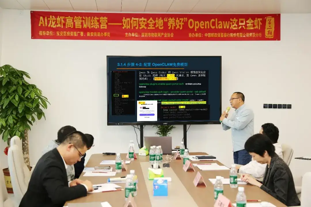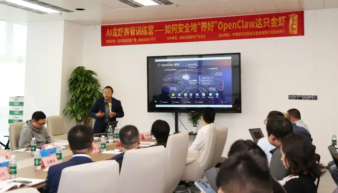 2026年3月18日,由宝安区投资推广署、新安街道办事处指导,深圳市物联网产业协会主办,中国邮政储蓄银行深圳分行协办的AI龙虾高管训练营(第二期)活动在恒明珠国际金融中心成功举办。本次活动以如何安全地“养好”OpenClaw这只金虾为核心主题,汇聚政府领导、行业专家、企业负责人与技术精英,围绕开源AI智能体技术应用、合规落地、场景实践等关键议题展开深度交流,为AI技术与产业融合发展搭建高效对接平台。