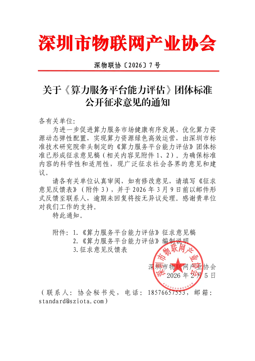 为满足协会业务拓展及会员服务升级的需求,深圳市物联网产业协会自2026年2月24日(星期二)起正式迁址至深圳市宝安区建安一路9号恒明珠国际金融中心4202室办公,欢迎大家前来参观指导,联系电话:18617110944 / 18576657553(微信同号)。