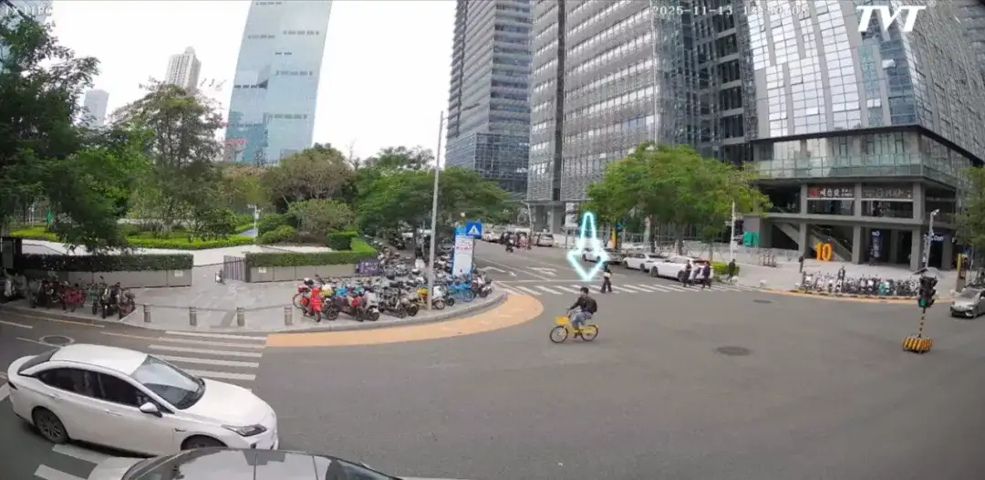 (通过文搜在复杂环境下找到“骑黄色自行车的人”)